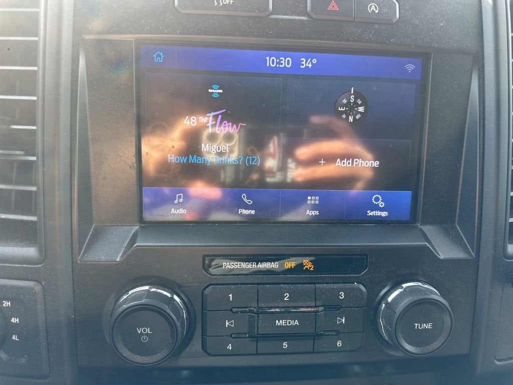 This F-150 XL is nicely equipped with GVWR: 6,600 lbs Payload Package, 4WD, 3.55 Axle Ratio, 4-Wheel Disc Brakes, ABS brakes, Air Conditioning, Auto High-beam Headlights, Brake assist, Class IV Trailer Hitch Receiver, Compass, Delay-off headlights, Driver door bin, Dual front impact airbags, Dual front side impact airbags, Electronic Stability Control, Exterior Parking Camera Rear, Front anti-roll bar, Front License Plate Bracket, Front wheel independent suspension, Fully automatic headlights, Low tire pressure warning, Occupant sensing airbag, Outside temperature display, Overhead airbag, Passenger door bin, Passenger vanity mirror, Power steering, Radio: AM/FM Stereo w/6 Speakers, Rear step bumper, SiriusXM Radio, Speed-sensing steering, Split folding rear seat, SYNC 3, Tachometer, Telescoping steering wheel, Tilt steering wheel, Traction control, Variably intermittent wipers, and Voltmeter. Price does not include licensing costs, registration fees, taxes and dealer doc fee of $899.50 which are to be paid by the consumer.