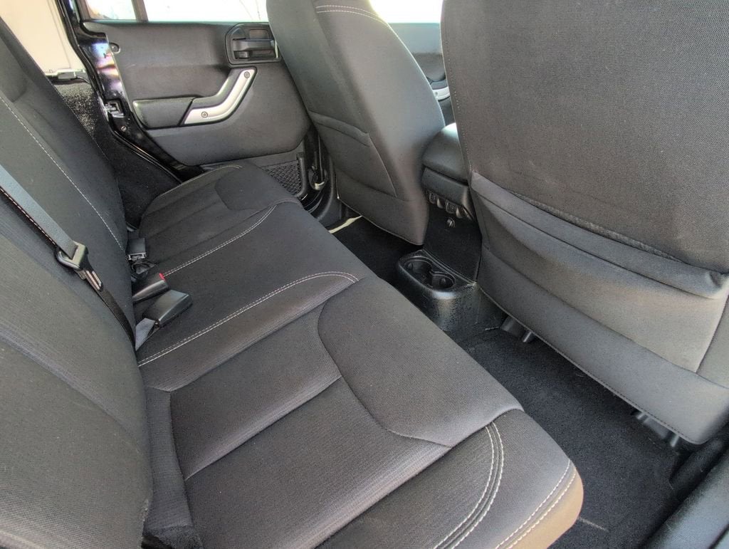 This Wrangler Unlimited Sahara is nicely equipped with Quick Order Package 24G (Body Color Appliques Front Bumper, Body Color Appliques Rear Bumper, and Body Color/Accent Color Grille), 18 x 7.5 Polished Satin Carbon Wheels, 3.21 Rear Axle Ratio, 4-Wheel Disc Brakes, 8 Speakers, ABS brakes, Air Conditioning, Alloy wheels, AM/FM radio: SiriusXM, Audio Jack Input for Mobile Devices, Auto-dimming Rear-View mirror, Black 3-Piece Hard Top, Brake assist, CD player, Cloth Seats w/Adjustable Head Restraints, Compass, Delete Sunrider Soft Top, Driver door bin, Driver vanity mirror, Dual front impact airbags, Electronic Stability Control, Freedom Panel Storage Bag, Front anti-roll bar, Front Bucket Seats, Front Center Armrest w/Storage, Front fog lights, Front reading lights, Fully automatic headlights, Heated door mirrors, Heavy Duty Suspension w/Gas Shocks (DISC), Illuminated entry, Integrated roll-over protection, Leather steering wheel, Low tire pressure warning, Manufacturer's Statement of Origin, Occupant sensing airbag, Outside temperature display, Panic alarm, Passenger door bin, Passenger vanity mirror, Power door mirrors, Power steering, Power windows, Radio data system, Radio: 130, Rear anti-roll bar, Rear Window Defroster, Rear Window Wiper/Washer, Remote keyless entry, Security system, Speed control, Split folding rear seat, Steering wheel mounted audio controls, Supplemental Front Seat Side Airbags, Tachometer, Tilt steering wheel, Traction control, Trip computer, and Variably intermittent wipers. Price does not include licensing costs, registration fees, taxes and dealer doc fee of $899.50 which are to be paid by the consumer.