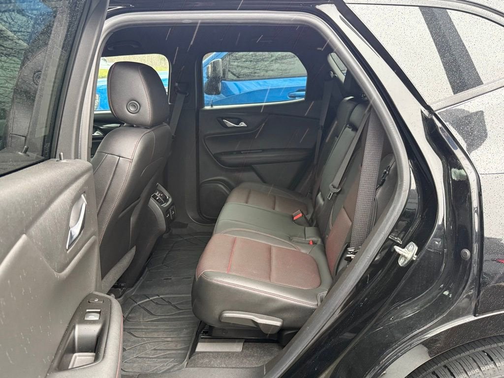 This Blazer RS is nicely equipped with Cargo Package (LPO) (Retractable Cargo Shade and Vertical Cargo Net (LPO)), Enhanced Convenience & Driver Confidence II Pkg (Advanced Adaptive Cruise Control, Following Distance Indicator, Forward Automatic Braking, Forward Collision Alert, Front Pedestrian Braking, HD Surround Vision, Heated Rear Outboard Seating Positions, IntelliBeam Headlamps, Lane Keep Assist w/Lane Departure Warning, Memory Settings For Driver Seat & Exterior Mirrors, Power Tilt & Telescoping Steering Column, Radio: Chevrolet Infotainment 3 Premium System, Rear Camera Mirror, Safety Alert Seat, Ventilated Driver & Front Passenger Seats, and Wireless Charging), Floor Liner Package (LPO) (1st & 2nd Row All-Weather Floor Liner (LPO)), Preferred Equipment Group 1RS, 3.49 Final Drive Ratio, 4-Wheel Disc Brakes, 6 Speakers, 6-Speaker Audio System Feature, 6-Way Power Front Passenger Seat Adjuster, ABS brakes, Air Conditioning, Alloy wheels, AM/FM radio: SiriusXM, Apple CarPlay/Android Auto, Auto-dimming door mirrors, Auto-dimming Rear-View mirror, Automatic temperature control, Brake assist, Bumpers: body-color, Child-Seat-Sensing Airbag, Compass, Delay-off headlights, Driver door bin, Driver vanity mirror, Dual front impact airbags, Dual front side impact airbags, Electronic Stability Control, Emergency communication system: OnStar and Chevrolet connected services capable, Four wheel independent suspension, Front anti-roll bar, Front Bucket Seats, Front Center Armrest, Front dual zone A/C, Front reading lights, Fully automatic headlights, Garage door transmitter, Heated door mirrors, Heated Driver & Front Passenger Seats, Heated front seats, Heated steering wheel, High-Intensity Discharge Headlights, Illuminated entry, Knee airbag, Leather Shift Knob, Low tire pressure warning, Navigation System, Occupant sensing airbag, Outside temperature display, Overhead airbag, Overhead console, Panic alarm, Passenger door bin, Passenger vanity mirror, Perforated Leather-Appointed Seat Trim, Power door mirrors, Power driver seat, Power Liftgate, Power passenger seat, Power steering, Power windows, Radio data system, Radio: Chevrolet Infotainment 3 Plus System, Rear anti-roll bar, Rear reading lights, Rear seat center armrest, Rear window defroster, Rear window wiper, Remote keyless entry, Ride & Handling Suspension, Roof rack: rails only, Security system, Set of 4 Wheel Locks (LPO), Speed control, Speed-sensing steering, Split folding rear seat, Spoiler, Steering wheel mounted audio controls, Tachometer, Telescoping steering wheel, Tilt steering wheel, Traction control, Trip computer, Turn signal indicator mirrors, Variably intermittent wipers, Voltmeter, and Wheels: 20 Dark Android Machined-Face Aluminum. Price does not include licensing costs, registration fees, taxes and dealer doc fee of $899.50 which are to be paid by the consumer.