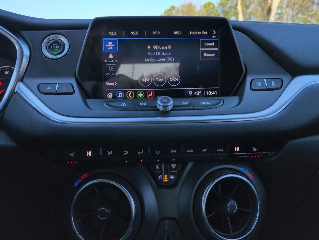 This Blazer LT is nicely equipped with Convenience & Driver Confidence Package (Black Roof Rails, Heated Driver & Front Passenger Seats, Inside Rear-View Auto-Dimming Mirror, Lane Change Alert w/Side Blind Zone Alert, Outside Heated Power-Adjustable Body-Color Mirrors, Rear Cross Traffic Alert, Rear Park Assist w/Audible Warning, Rear Power Programmable Liftgate, Remote Start, and Universal Home Remote), Interior Protection Package (LPO) (Premium All-Weather Cargo Mat (LPO) and Premium All-Weather Floor Mats), Preferred Equipment Group 2LT, GM Certified, 170 Amp Alternator, 3.47 Final Drive Axle Ratio, 4-Wheel Disc Brakes, 6 Speakers, 6-Speaker Audio System Feature, ABS brakes, Air Conditioning, Alloy wheels, AM/FM radio: SiriusXM, Apple CarPlay/Android Auto, Auto High-beam Headlights, Automatic temperature control, Brake assist, Bumpers: body-color, Child-Seat-Sensing Airbag, Compass, Delay-off headlights, Driver door bin, Driver vanity mirror, Dual front impact airbags, Dual front side impact airbags, Electronic Stability Control, Emergency communication system: OnStar and Chevrolet connected services capable, Exterior Parking Camera Rear, Four wheel independent suspension, Front & Rear Black Bowties, Front & Rear Custom Molded Splash Guards, Front anti-roll bar, Front Bucket Seats, Front Center Armrest, Front dual zone A/C, Front reading lights, Fully automatic headlights, Heated door mirrors, High-Intensity Discharge Headlights, Illuminated entry, Knee airbag, Leather Shift Knob, Low tire pressure warning, Occupant sensing airbag, Outside temperature display, Overhead airbag, Overhead console, Panic alarm, Passenger door bin, Passenger vanity mirror, Power door mirrors, Power driver seat, Power steering, Power windows, Premium Cloth Seat Trim, Radio data system, Radio: Chevrolet Infotainment 3 System, Rear anti-roll bar, Rear reading lights, Rear seat center armrest, Rear window defroster, Rear window wiper, Remote keyless entry, Ride & Handling Suspension, Security system, SiriusXM Radio, Speed control, Speed-sensing steering, Split folding rear seat, Spoiler, Steering wheel mounted audio controls, Tachometer, Telescoping steering wheel, Tilt steering wheel, Traction control, Trip computer, Variably intermittent wipers, Voltmeter, Wheels: 18 Bright Silver Aluminum, and Wheels: 20 Gloss Black Aluminum. Price does not include licensing costs, registration fees, taxes and dealer doc fee of $899.50 which are to be paid by the consumer.
